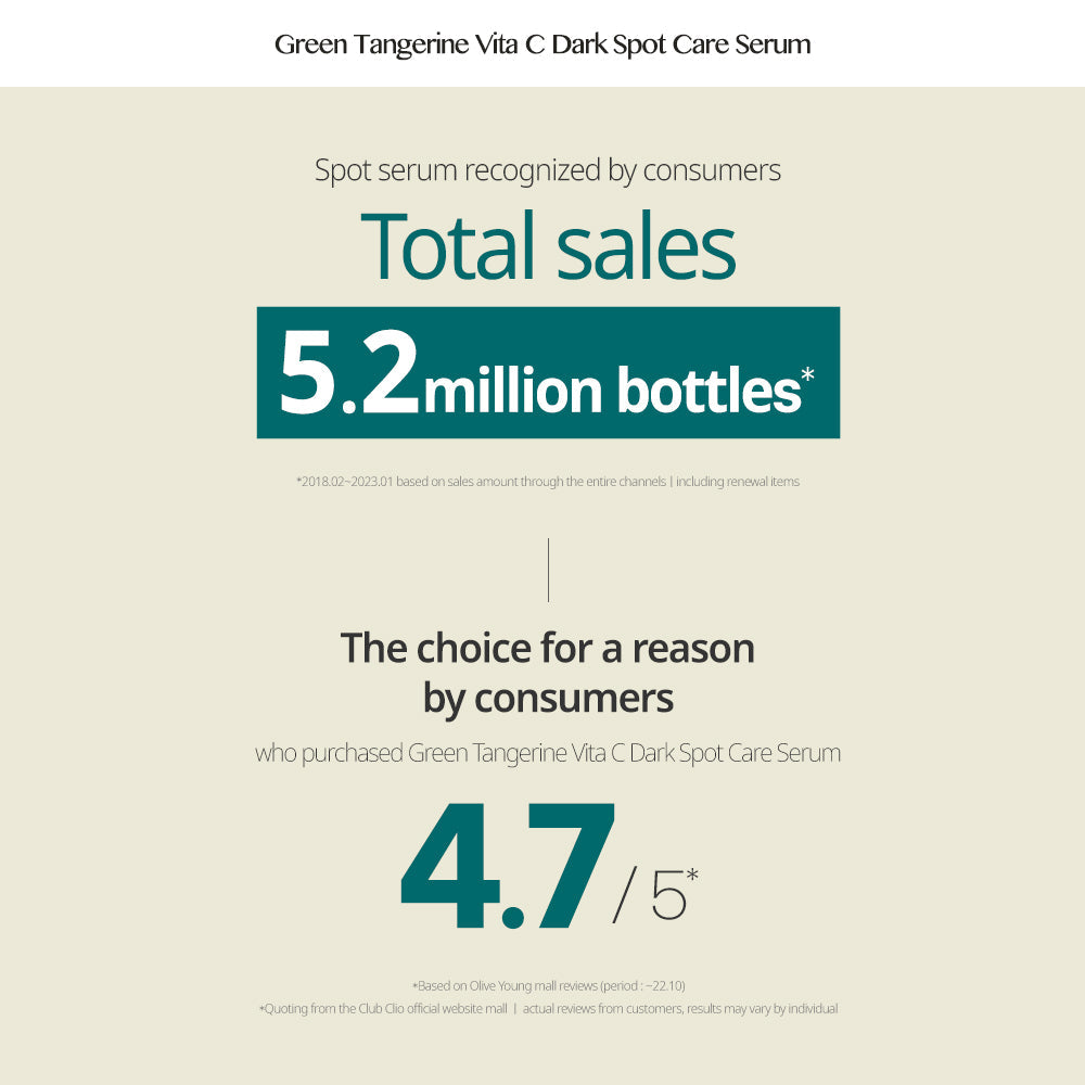 • Green Tangerine Extract (70%) – naturally rich in vitamin C for brightening and spot reduction