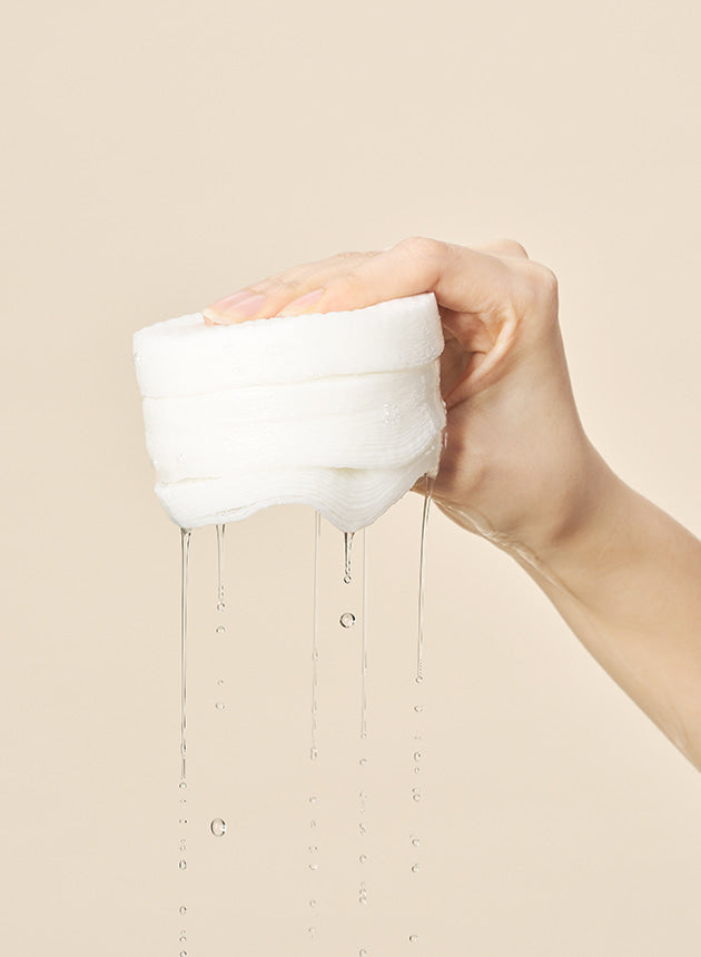 Soft cotton pads soaked in a weak acid water essence help lightly wipe away residue while keeping skin balanced and comfortable