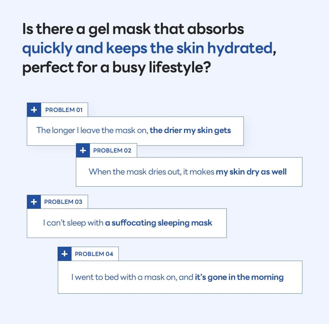 An intensive hydration mask with low-molecular hyaluronic acid and liposome technology, designed to deliver deep moisture that lasts — becomes transparent in 2 hours for time-release absorption.